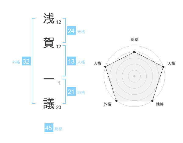 浅賀 一議さんの天格は24画の5点!