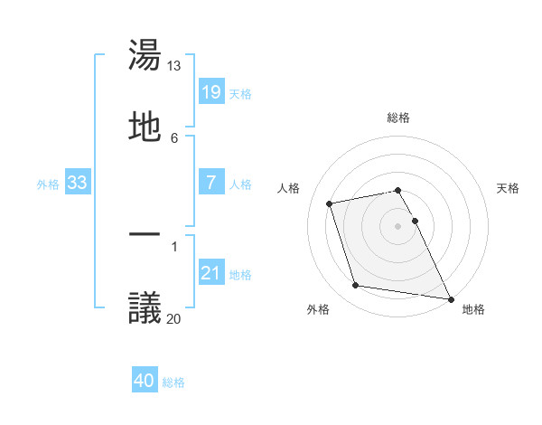 湯地 一議さんの総格は40画の2点!