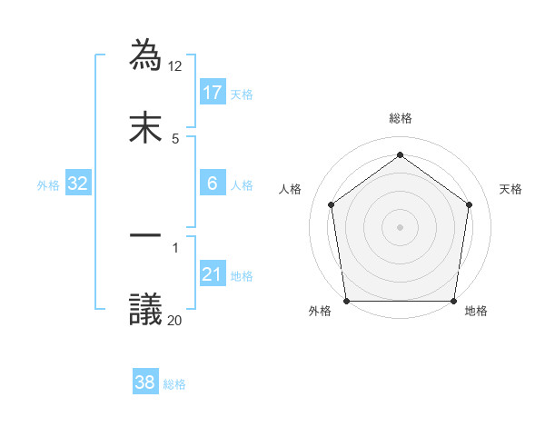 為末 一議さんの総格は38画の4点!