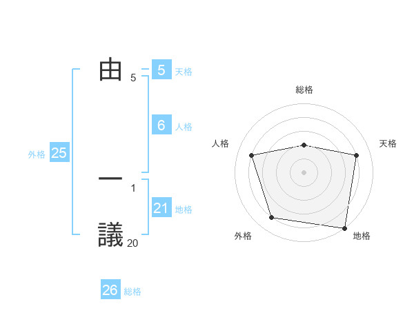 由 一議さんの天格は5画の4点!