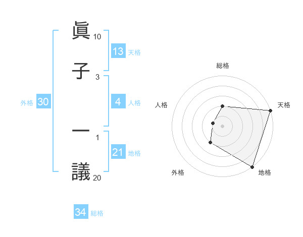 眞子 一議さんの天格は13画の5点!