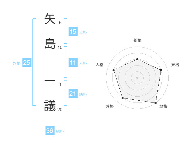 矢島 一議さんの地格は21画の5点!