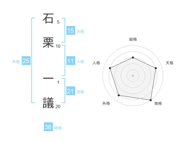 石栗 一議さんの地格は21画の5点!