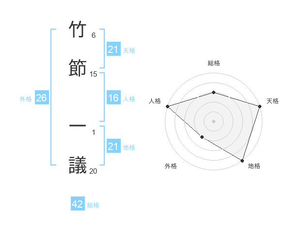 竹節 一議さんの総格は42画の3点!