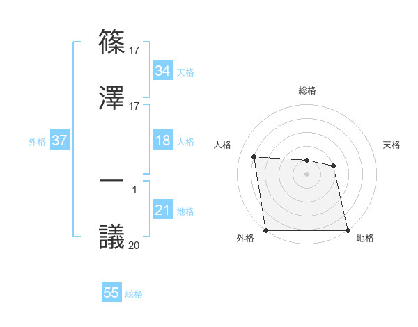 篠澤 一議さんを姓名の画数から五運を鑑定