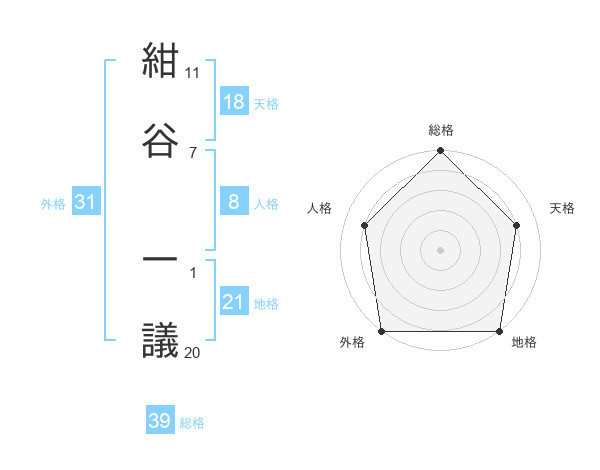 紺谷 一議さんを姓名の画数から五運を鑑定