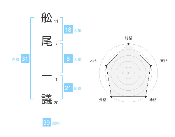 舩尾 一議さんの総格は39画の5点!