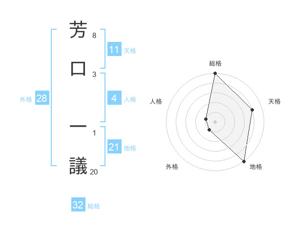 芳口 一議さんの総格は32画の5点!