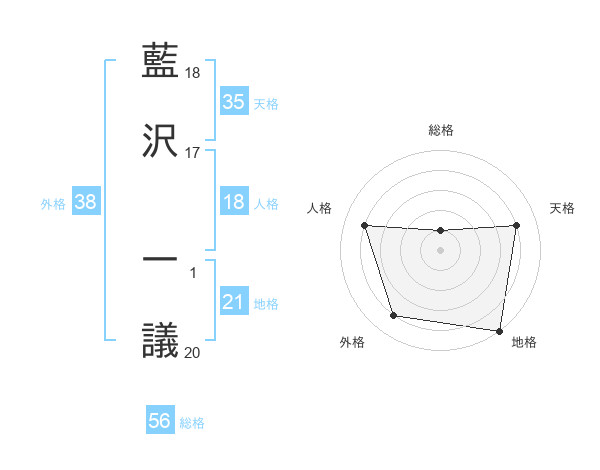 藍沢 一議さんの総格は56画の1点!