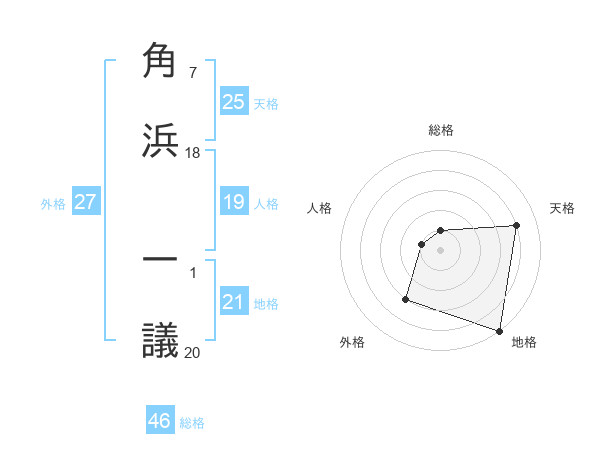 角浜 一議さんの地格は21画の5点!