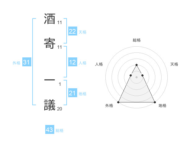 酒寄 一議さんを姓名の画数から五運を鑑定