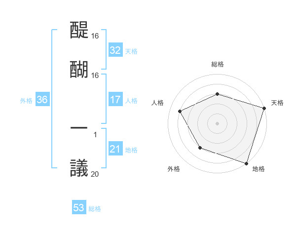 醍醐 一議さんの総格は53画の3点!
