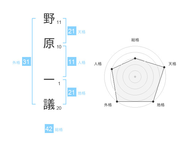 野原 一議さんの天格は21画の5点!