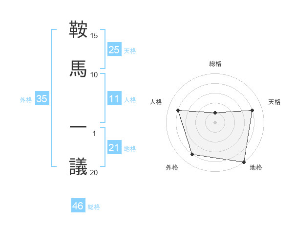 鞍馬 一議さんを姓名の画数から五運を鑑定