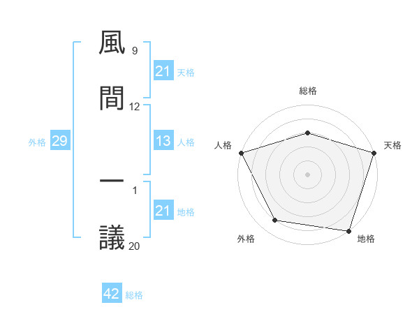 風間 一議さんの天格は21画の5点!