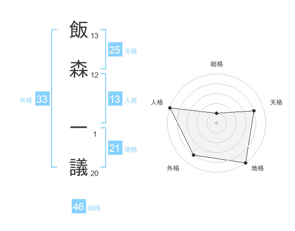飯森 一議さんの総格は46画の1点!