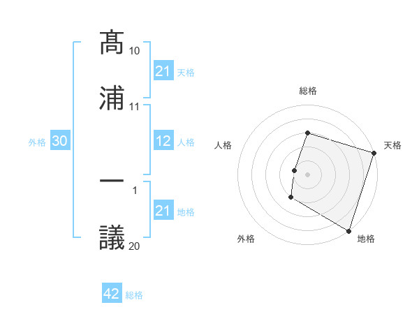 髙浦 一議さんを姓名の画数から五運を鑑定