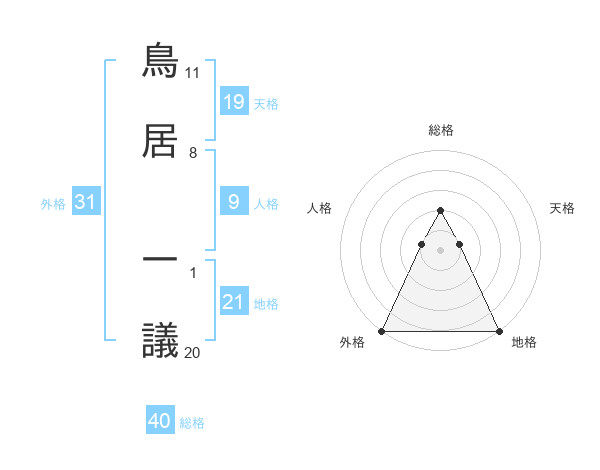 鳥居 一議さんの外格は31画の5点!