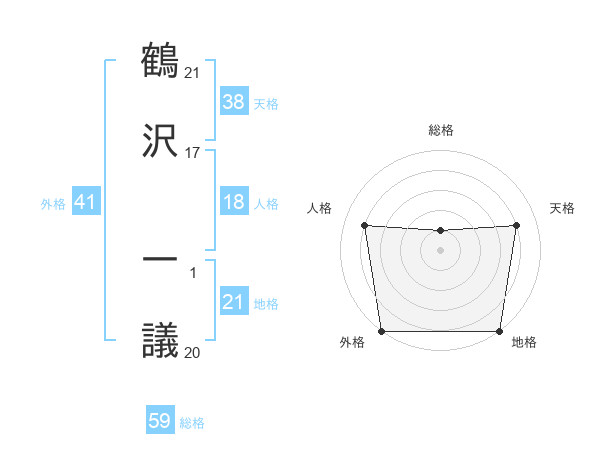 鶴沢 一議さんを姓名の画数から五運を鑑定