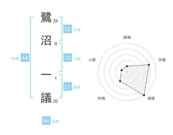 鷺沼 一議さんの総格は54画の1点!
