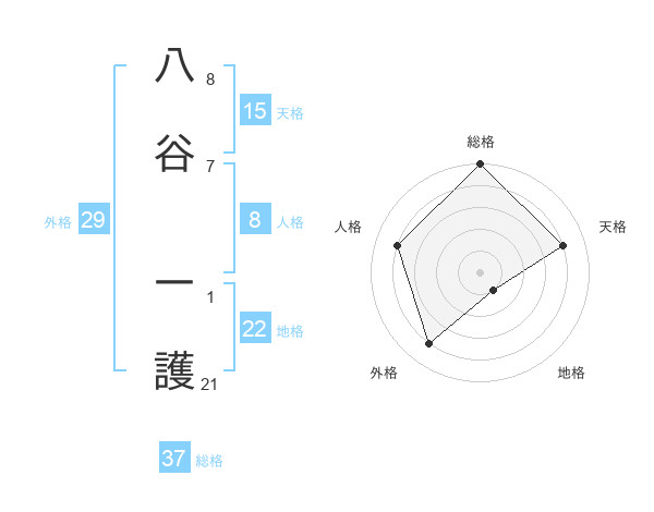 八谷 一護さんの地格は22画の1点!