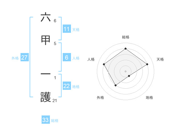 六甲 一護さんの地格は22画の1点!