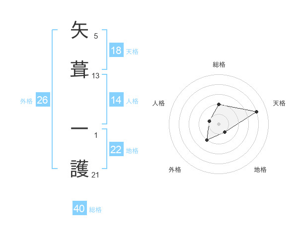 矢葺 一護さんの天格は18画の4点!
