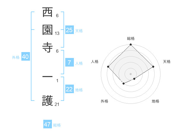 西園寺 一護さんの総格は47画の5点!