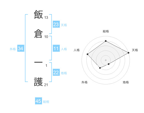 飯倉 一護さんの天格は23画の5点!