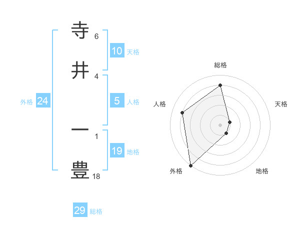 寺井 一豊さんの総格は29画の4点!