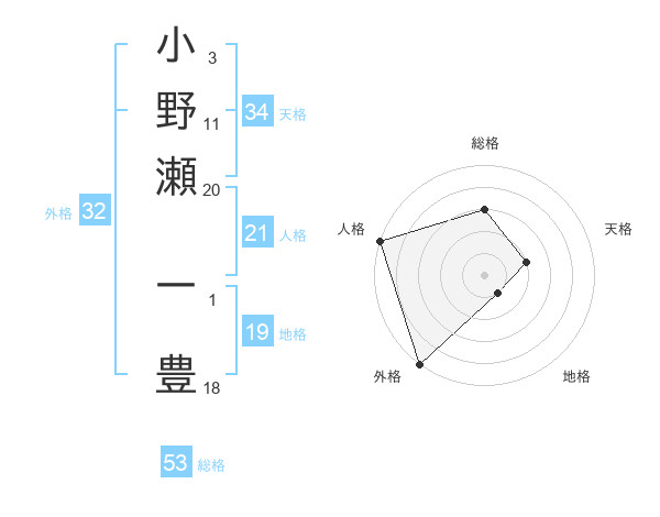 小野瀬 一豊さんを姓名の画数から五運を鑑定
