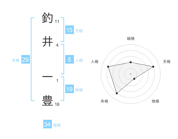 釣井 一豊さんの総格は34画の2点!