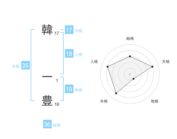 韓 一豊さんの天格は17画の4点!