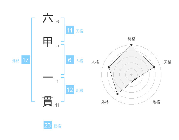 六甲 一貫さんの総格は23画の5点!