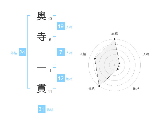 奥寺 一貫さんを姓名の画数から五運を鑑定