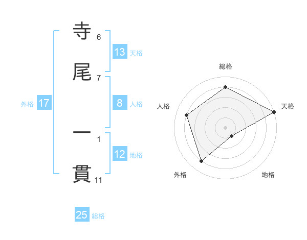 寺尾 一貫さんを姓名の画数から五運を鑑定