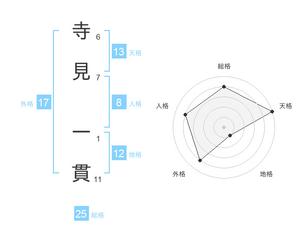 寺見 一貫さんを姓名の画数から五運を鑑定