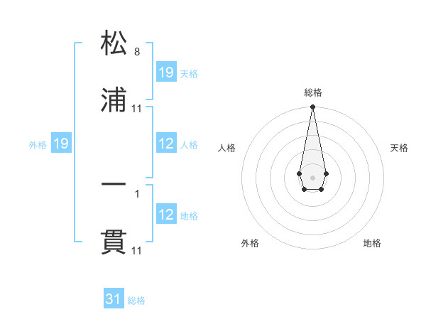 松浦 一貫さんの総格は31画の5点