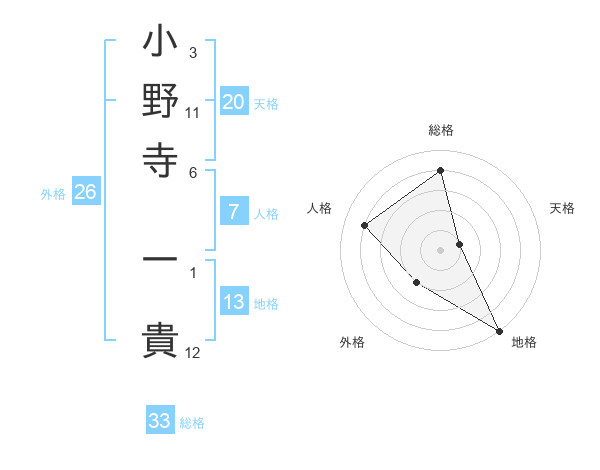 小野寺 一貴さんを姓名の画数から五運を鑑定