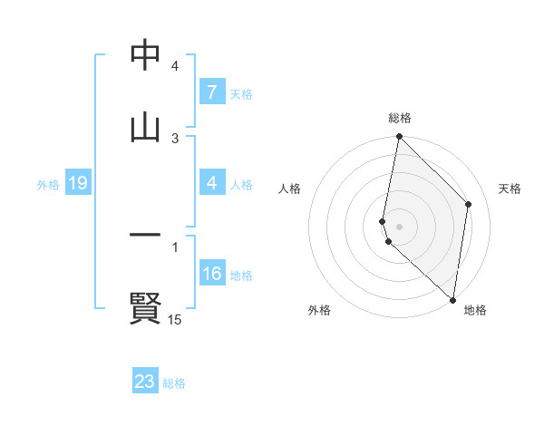 中山 一賢さんの総格は23画の5点!