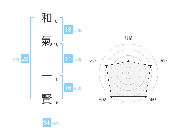 和氣 一賢さんを姓名の画数から五運を鑑定