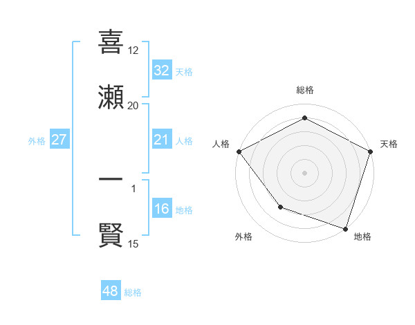 喜瀬 一賢さんの天格は32画の5点!