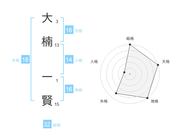 大楠 一賢さんを姓名の画数から五運を鑑定