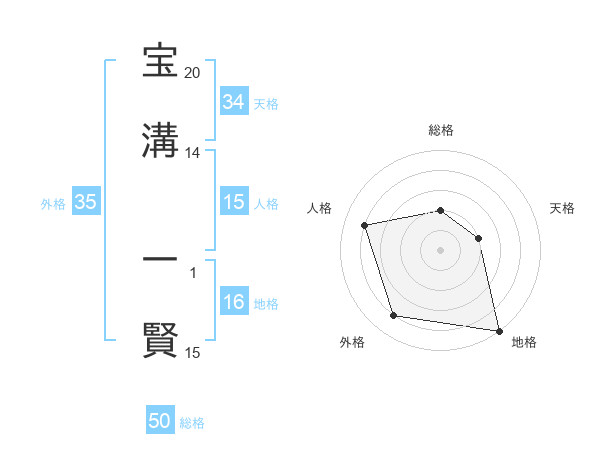 宝溝 一賢さんを姓名の画数から五運を鑑定