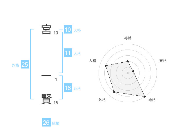 宮 一賢さんの総格は26画の2点!