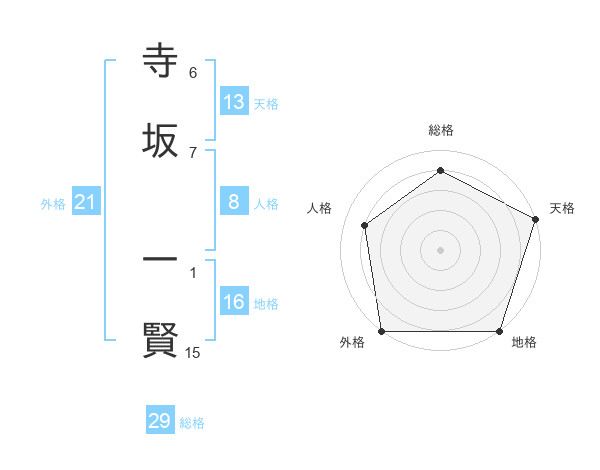 寺坂 一賢さんの総格は29画の4点!