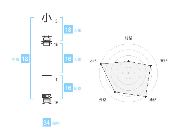 小暮 一賢さんの天格は18画の4点!