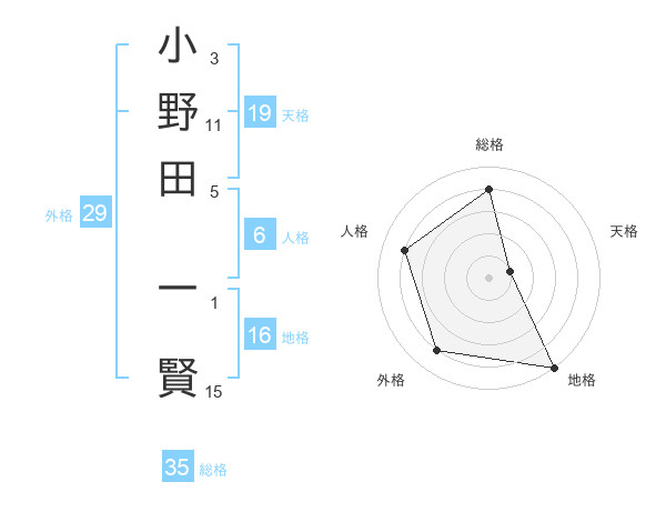 小野田 一賢さんを姓名の画数から五運を鑑定