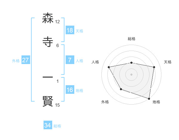 森寺 一賢さんの総格は34画の2点!
