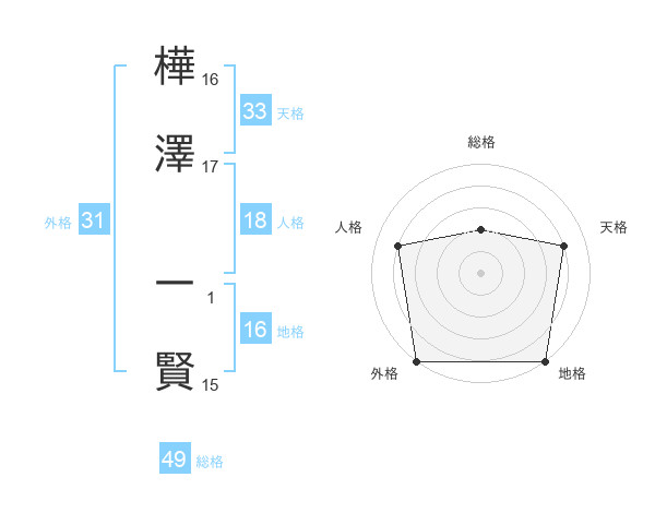 樺澤 一賢さんを姓名の画数から五運を鑑定